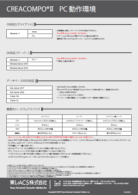 CREACOMPOⅡ の各ソフトウェアの特徴・機能紹介、運用タイプ/料金プランの詳細、サポート体制などを掲載しています。